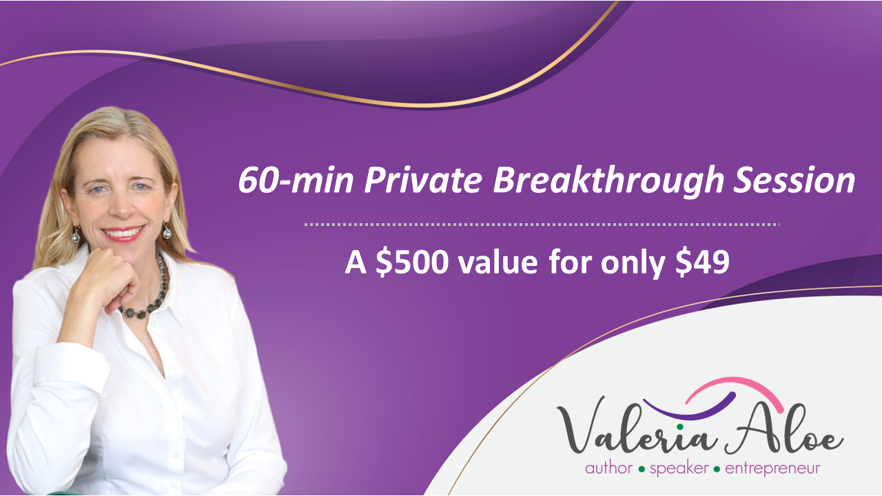 Book your 60 min private breakthrough session with me for only $49 (a $500 value). Offer ends Friday April 14th at 11pm ET.